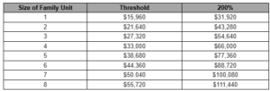 Families at or below 200% of the Federal Poverty Level are eligible.